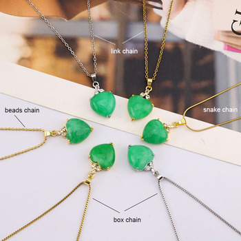 Banhado a ouro prata aço inoxidável jóias mama verde jade coração pingente colar para as mulheres