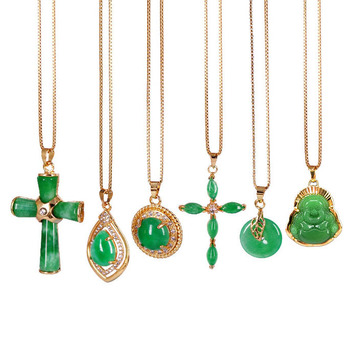 Colar com caixa de aço inoxidável, colar banhado a ouro de 16 + 3 polegadas com corrente de jade verde corss buda