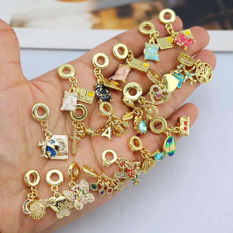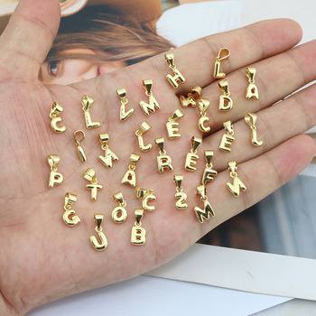 JS1755 Mini Pequeno Pequeno Pequeno Pequena Bolha 18k Banhado A Ouro Bail com Inchado Alfabeto Inicial letra Slider encantos pingentes