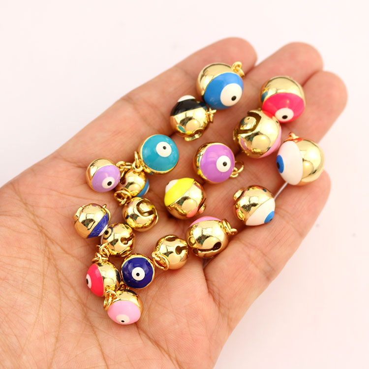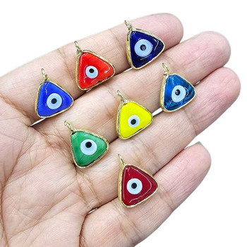 JS1787 Multicolor Mal Nazar Olho Triângulo Charme Pingente Banhado A Ouro Lampwork Vidro Zircão Talismã Cristão Protetor Sorte
