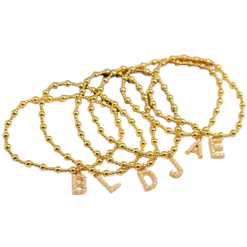 BM1140 Dainty Pequeno 2mm e 4mm 18k Banhado A Ouro Bola Rodada Beads Pulseira frisada com Pérola Alfabeto Inicial Charme Carta