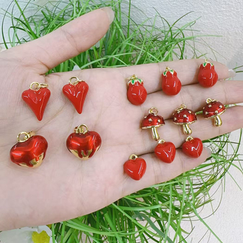 JS1799 Venda Quente Banhado A Ouro Esmalte Vermelho inchado Bolha Coração Estrela Bola Fruit Mushroom Charme Pingentes para Jóias Fazendo Suprimentos