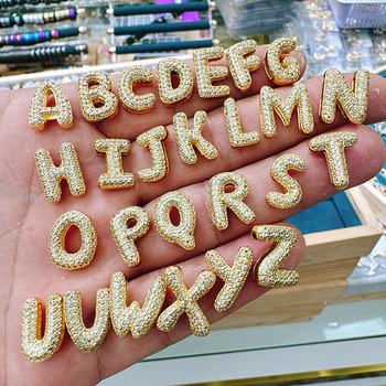 CZ9011 18k Ouro e Prata Iced Puffy Bolha Inicial Diamante Carta Espaçador Beads Loose Metal Beads para Pulseiras